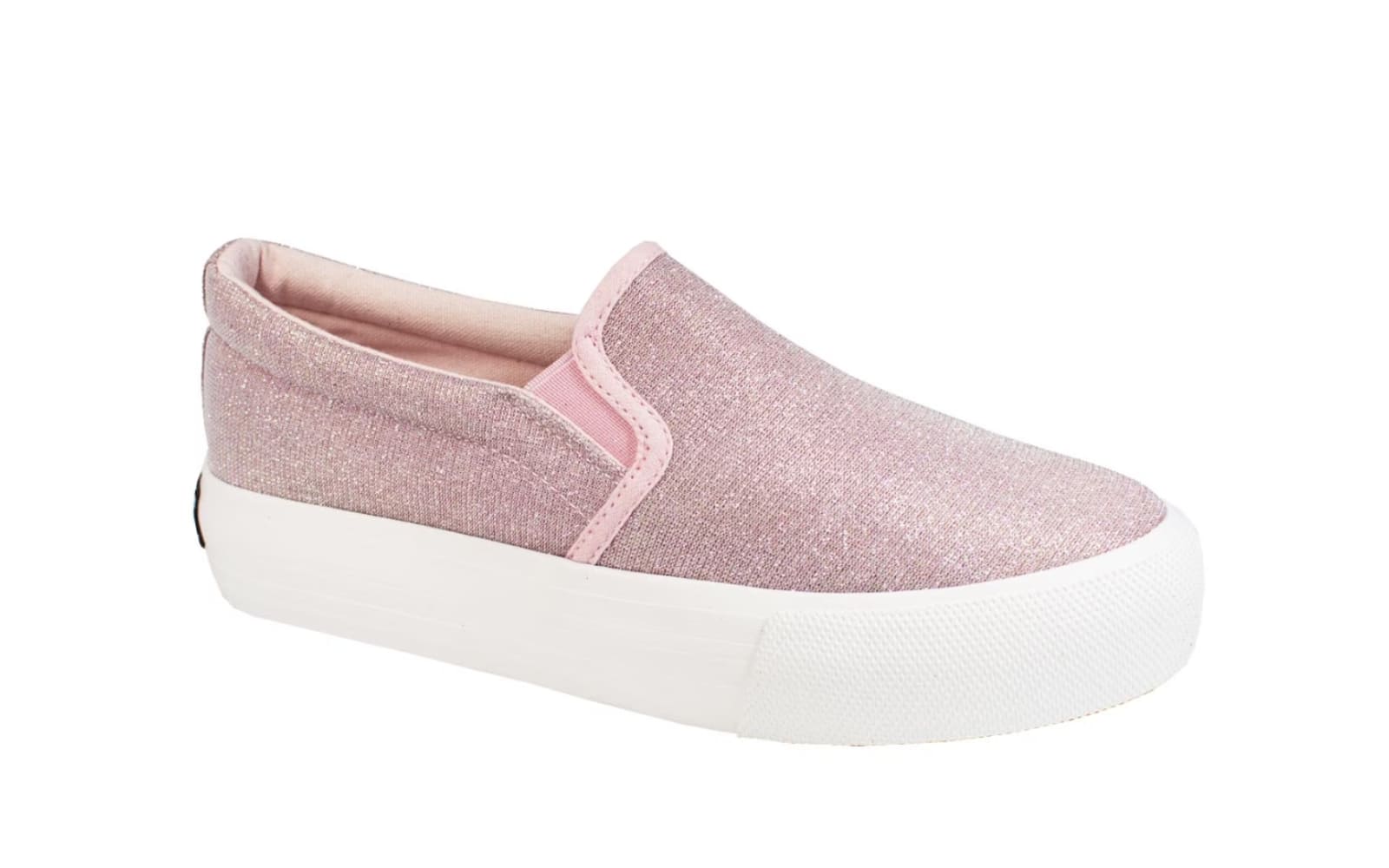 These glitter‑detailed slip‑on sneakers from Alexis Bendel bring easy everyday comfort with stretchy side elastics, a mini platform, and EVA/PU construction.
