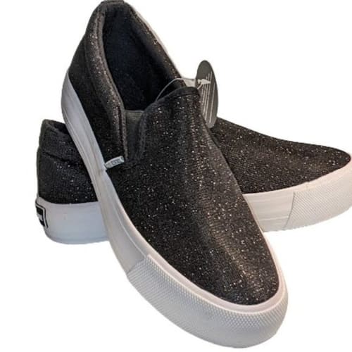 These glitter‑detailed slip‑on sneakers from Alexis Bendel bring easy everyday comfort with stretchy side elastics, a mini platform, and EVA/PU construction.